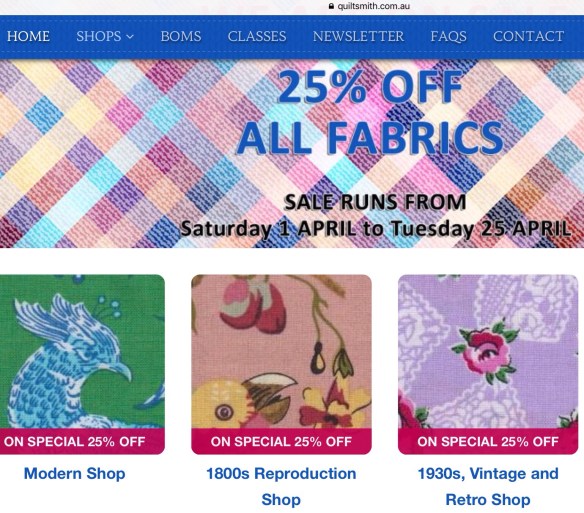 Hey EPQ members! You’ve all been busy finishing quilts for our exhibition that you may need to restock the stash … Here’s just what you need. Two Sydney fabric stores with great sales – Quiltsmith at Annandale and The Remnant Warehouse at Alexandria.