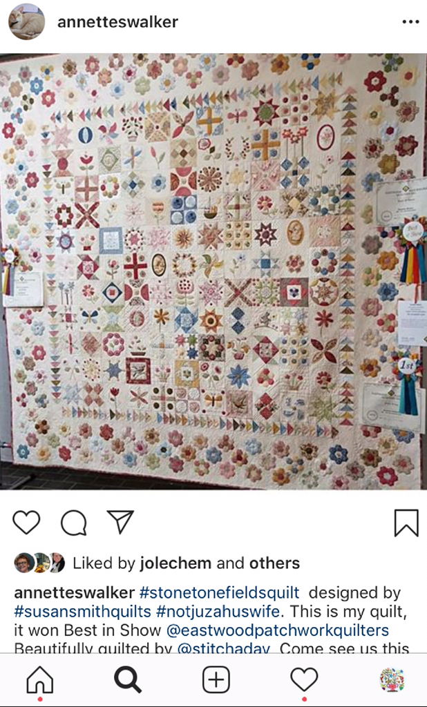 2019 Exhibition Save the date The 2019 EPQ Quilt Exhibition was held on May 3rd to 5th at Brush Farm House Eastwood. The best of show quilt was made by Annette Walker. The design is Stonefields by Susan Smith. Share this: Click to share on X (Opens in new window) X Click to share on Facebook (Opens in new window) Facebook Like Loading...