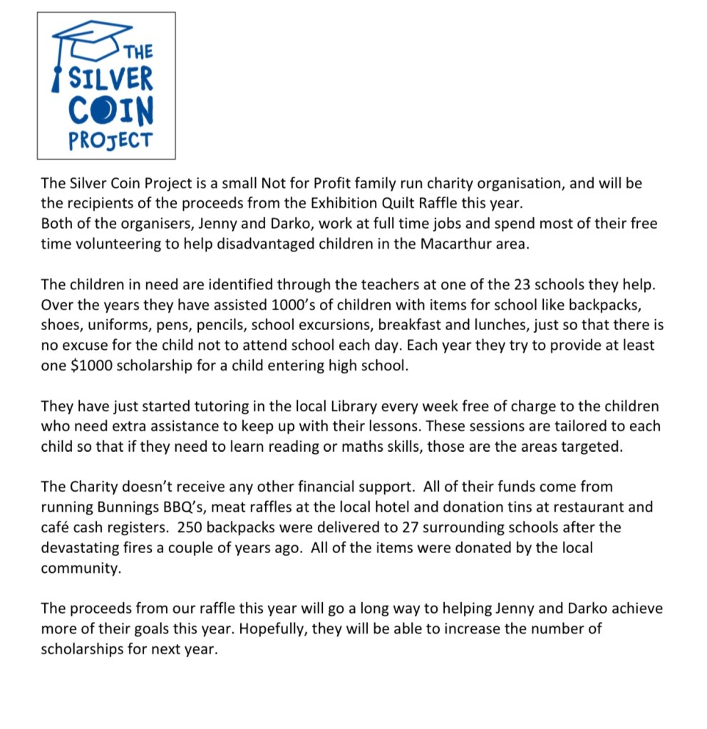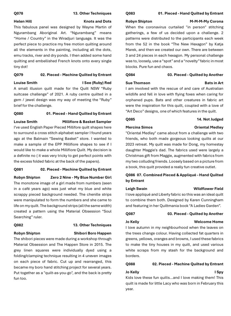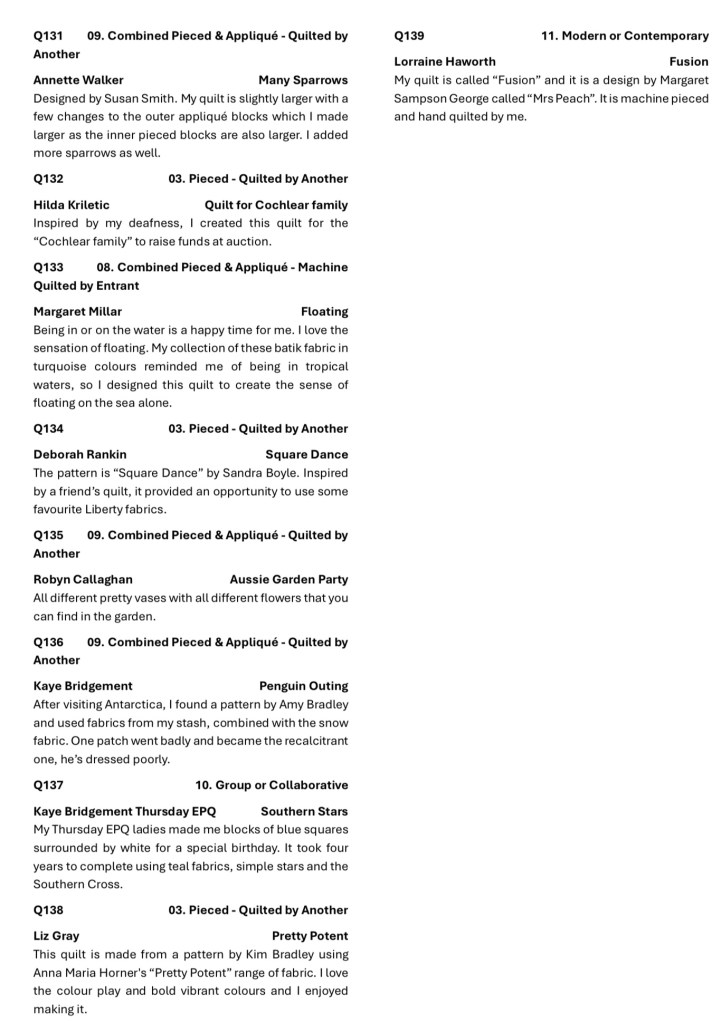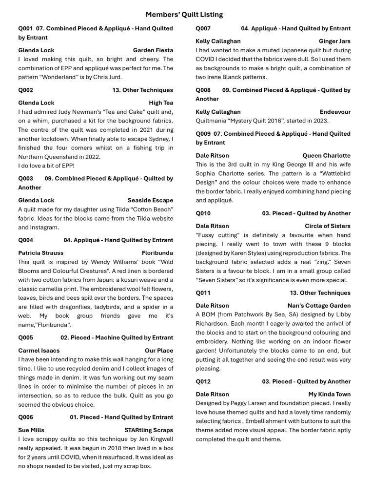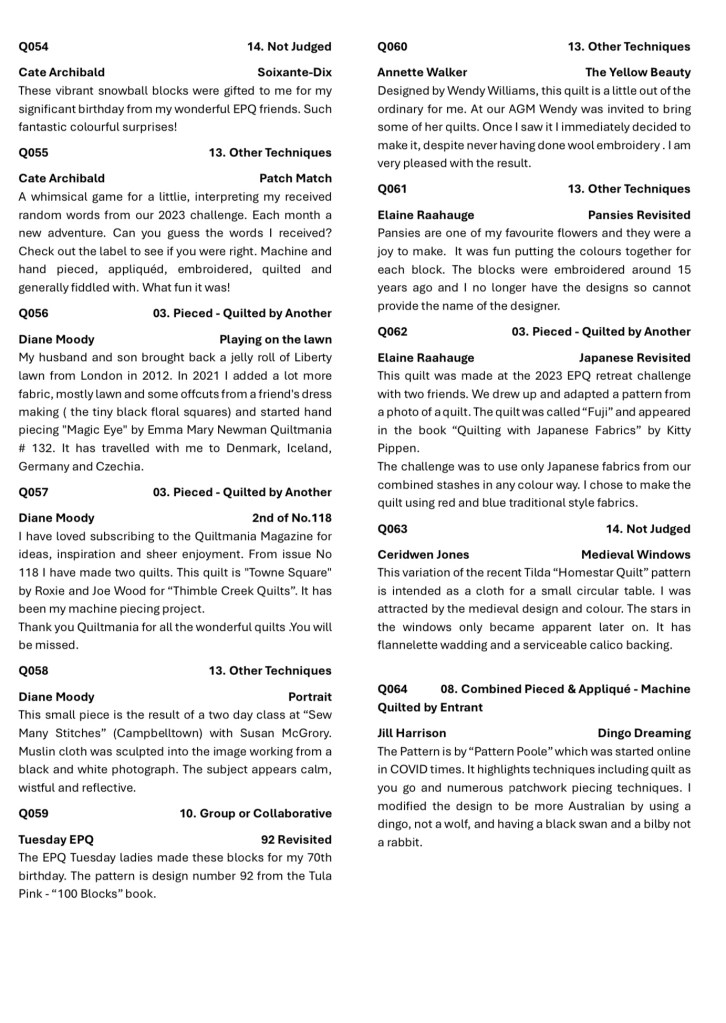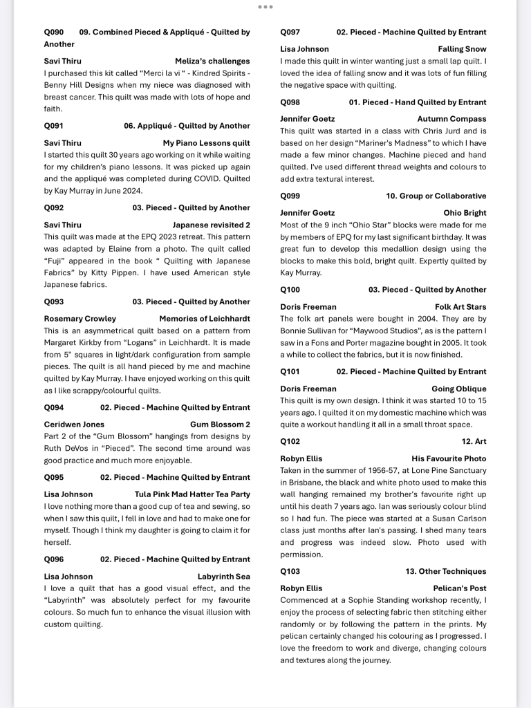 2024 Eastwood Patchwork Quilters Exhibition Catalogue Share this: Click to share on X (Opens in new window) X Click to share on Facebook (Opens in new window) Facebook Like Loading...