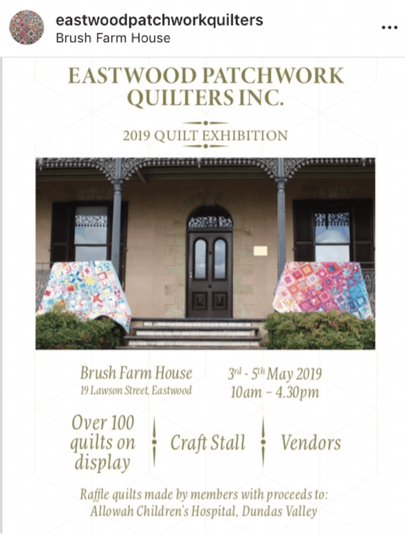 We are excitedly counting down the sleeps until our exhibition- it starts this Friday May 3rd and runs through until Sunday 5th May 10am until 4.30pm daily. You can follow us here and on Instagram @eastwoodpatchworkquilters