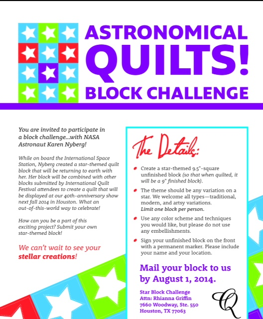Karen has now issued a challenge to quilters worldwide to create a star block to celebrate the 40 year anniversary of the Houston International Quilt Festival.