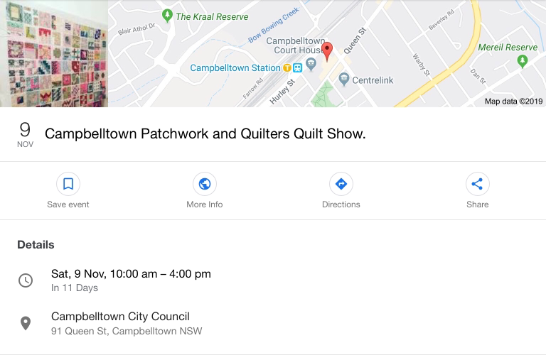 The members of Eastwood Patchwork Quilters would love to see you there in our new venue and with the same great cafe, members craft stall, vendors shops and for course an amazing array of members quilts in a wide variety of styles, colours and designs